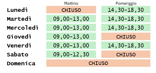 Eventuali giornate di chiusura straordinaria sono sempre segnalate sulla nostra scheda in Google.